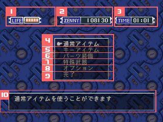 剛在雜貨店買到時只有5格,可一直購買補充包到最大上限100格 - 頭盔(E表示裝備中)